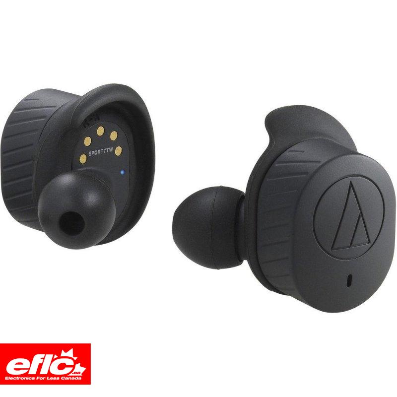 The ATH-SPORT7TW true wireless in-ear headphones will help keep you motivated and moving during your workouts - with absolutely no wires to get in your way! The headphones come with four interchangeable sizes (XS, S, M, L) of ergonomic Freebit®ear fins to give you a custom - and comfortable - fit designed to stay in place during physical activity. The headphones also have a certified IPX5* waterproof rating, so you can wash the sweat off them and have them ready for your next workout.