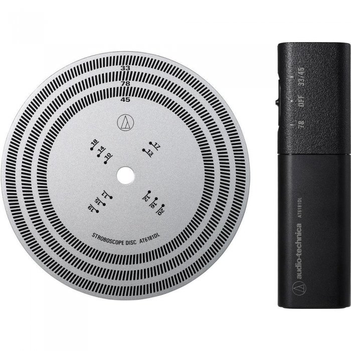 The AT6181DL kit includes a stroboscope disc along with a quartz strobe light, giving you everything you need to precisely check your turntable's rotation speed. The light's yellow LED provides a clear, accurate reading of the stroboscope's high-contrast markings for 33-1/3, 45 and 78 RPM speeds. Stroboscope disc also includes an overhang guide.