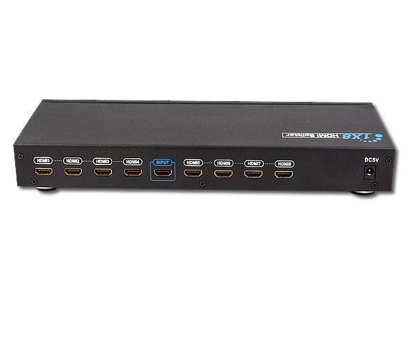 The device is designed to accept one HDMI source and connect up to eight different outputs, such as TVs, projectors and so on.  The transmitters are fully compliant with HDMI high speed 1.3B ,supports 3D and HDCP.