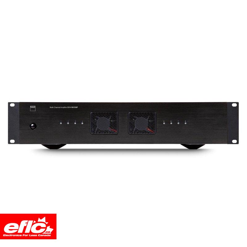 Our eight-channel powerhouse promises NAD's legendary performance with reliability and stability with lots of installer-friendly Features. The all-new CI 8-150 DSP is an advanced amplifier targeted squarely at audiophile-grade distributed audio systems. Delivering a conservative 8 x 150 Watts per channel @ 8 Ohms, it is also bridgeable to 4 x 280 Watts per channel @ 8 Ohms with all channels driven. To put it simply, the CI 8-150 will drive most anything you need in your multi-room audio system, and will do so with remarkable sound quality.