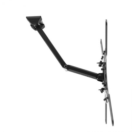 Measuring 18.6" long, the articulating arm allows for a wide range of viewing angles. Swivel your TV 51° to 90° in either direction, depending on screen size, and tilt it up to 12° forward to improve line-of-sight and 2° backward to reduce glare.