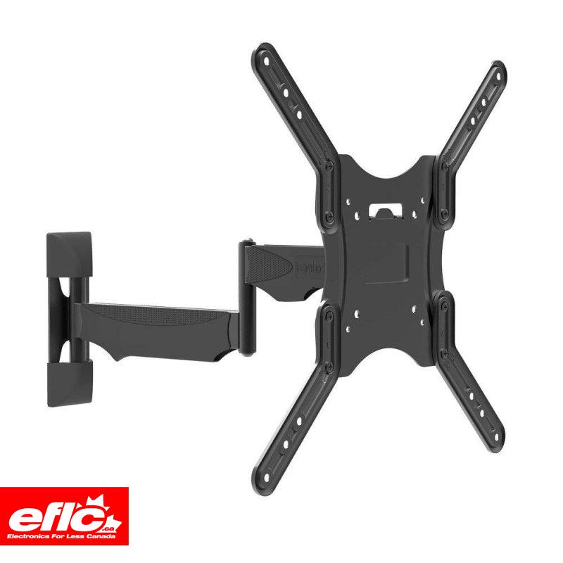 The M200 single-stud TV mount allows you to achieve a wide range of viewing angles without taking up a large amount of wall space. Providing 18.6 inches of extension, its articulating support arm provides easy swivel, pan and tilt adjustments to improve line-of-sight with your TV. The arm can also be pushed back to place your TV 1.8" from the wall, with the center of the screen sitting 3.9 inches to the left or right of the wall plate. Featuring snap-on cable management clips and wall plate covers, the M200 provides a clean and low-profile solution to your TV mounting needs.