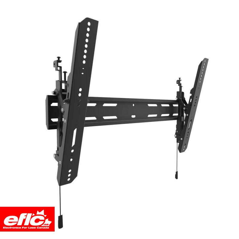 The PT300 is a dual-stud, tilting wall mount designed to support TVs up to 90 inches. Its pre-tensioned mounting brackets provide 12° of forward tilt, helping to reduce glare and improve line-of-sight with your TV. Each bracket is equipped with a horizontal leveling screw to facilitate precision leveling, a Torx screw and locking feature to protect against theft, and a quick-release cord for easy removal of your TV. Sitting 1.4 inches from the wall, the PT300's wall plate is wide enough to accommodate both 16 and 24-inch stud spacing, and comes with all the hardware you need for wood stud and concrete installation.