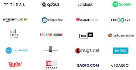 • Supported Cloud Services : Spotify, Amazon Music HD, TIDAL, Deezer , Qobuz, HighResAudio (VAULT Required), Napster, KKBox, Bugs, Taihe Music ZONE, SoundMachine, IDAGIO, OraStream