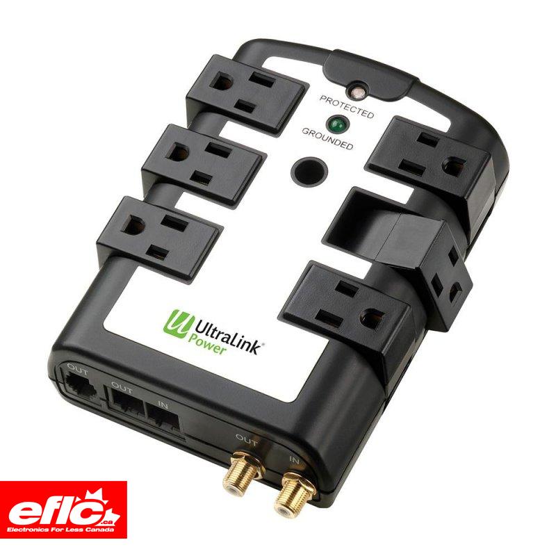 Ultralink 6 Outlet Rotating Surge Protector. Complete line protection for Coaxial cable, telephone and network cables.