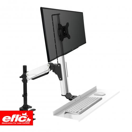 The EFD is a sit to stand workstation that allows you to work sitting or standing, while preserving all the space on the surface of your desk. Swivels to any desired angle, and swings out of the way to keep your desk clear when not in use. Large 26.5" x 9" keyboard tray easily holds your keyboard and mouse, and folds up out of the way when not in use. Monitor mount moves up and down independently of the keyboard tray and holds up to 27" monitor up to 24 lbs. Gas spring allows you to easily move the EFD up and down so you can work sitting or standing.