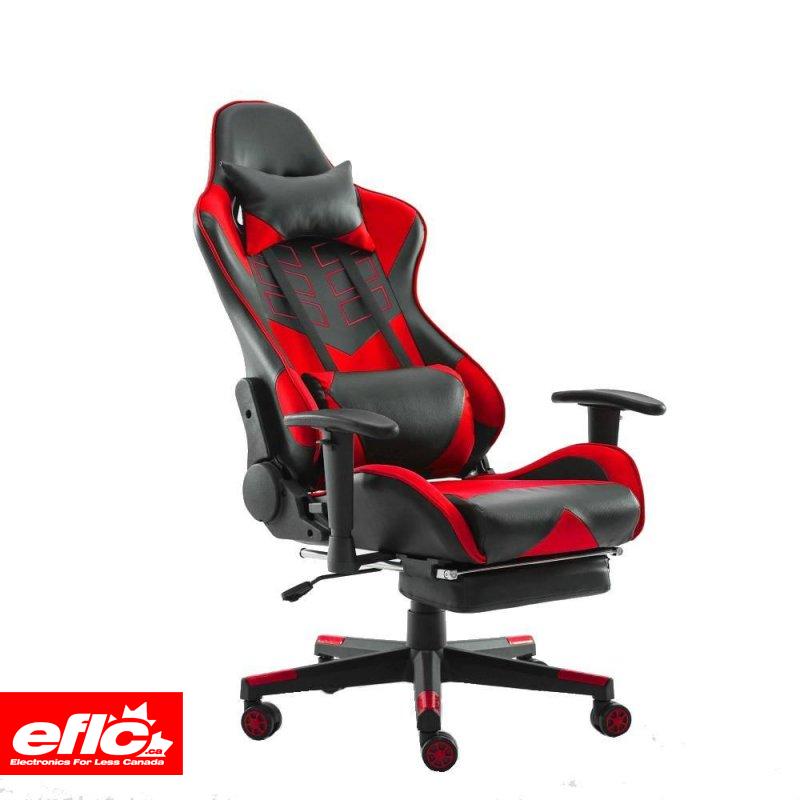 Home Touch WARLOCK Gaming Chair w PUC Fabric, Foot Rest & Lumbar Support BLACK/RED Shipping : FREE in Canada